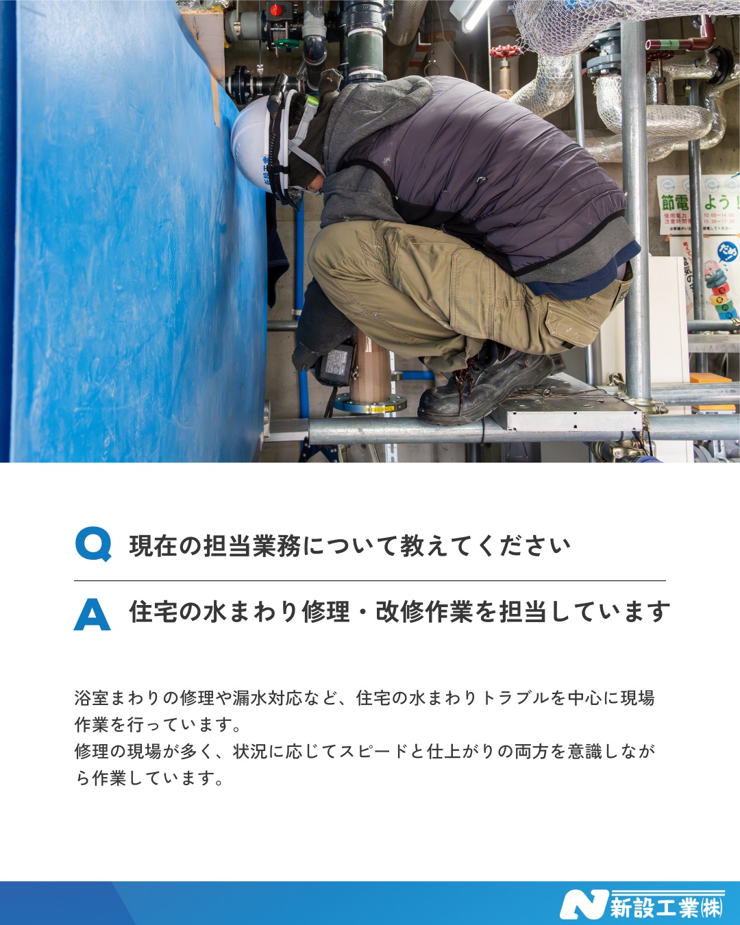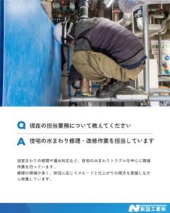 2022年に入社し、住宅の水まわり修理・改修作業を担当しています。