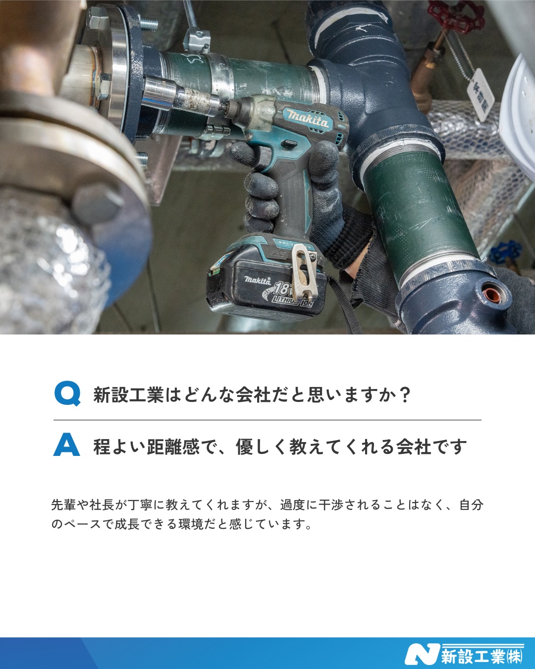 新設工業を一言で表すなら、「修理に強く、幅広い技術を身につけられる会社」。