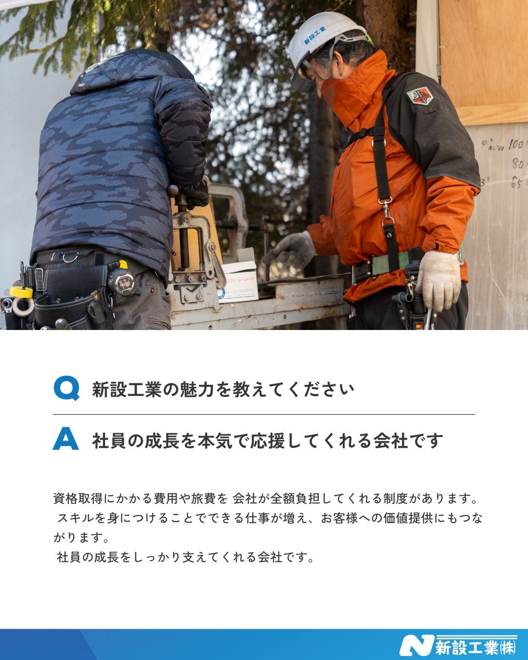 新設工業の魅力は、社員の成長を本気で応援してくれるところだと思います。